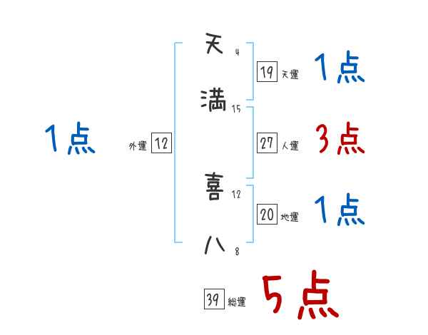 天満喜八さんの画数の鑑定結果