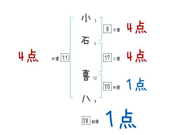 小石喜八さんの画数の鑑定結果