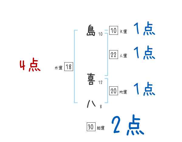 人運![]() | 島喜八さんの人運は22画の1つ星!努力することが苦手ないっぽう手先が器用。芸術性にも優れる。 性格や才能などを表す2番目に重要な運勢です。人間関係や協調性、社会的な成功に影響します。主に20歳から50歳ぐらいまでの中年期の運勢を表します。 |