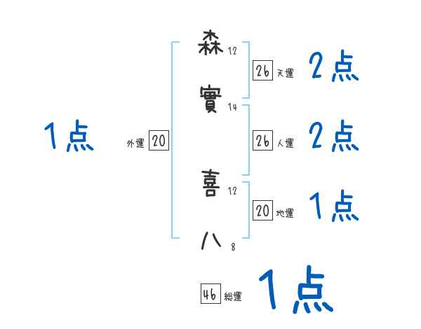 森實喜八さんの画数の鑑定結果