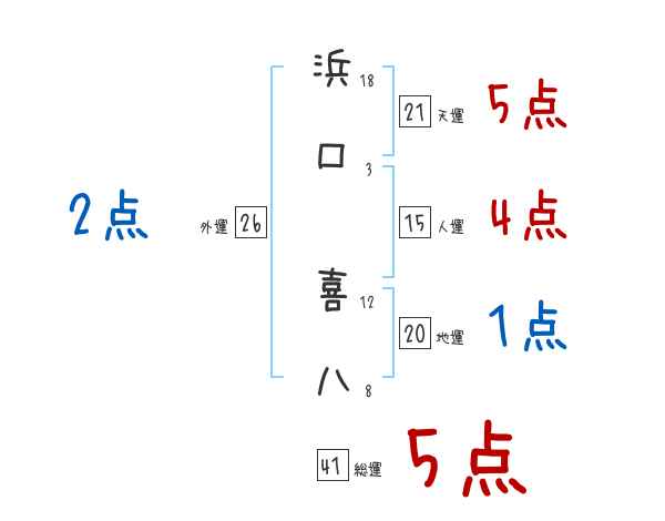 浜口喜八さんの画数の鑑定結果