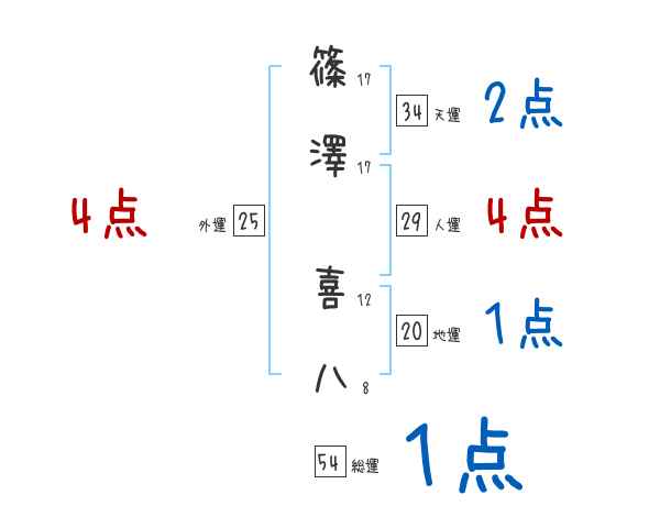 篠澤喜八さんの画数の鑑定結果