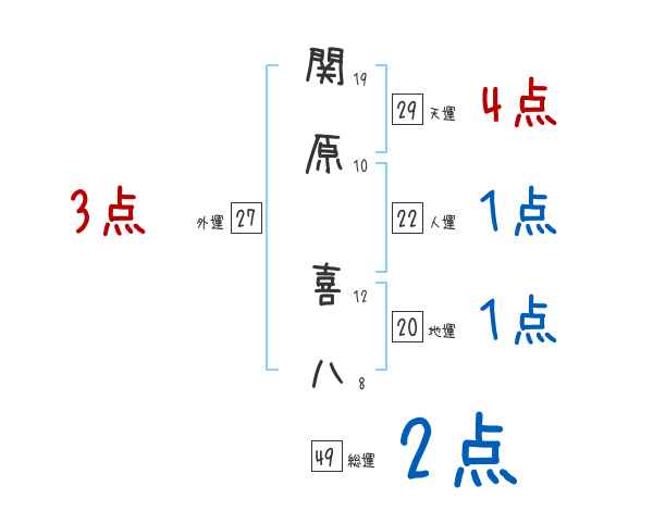 関原喜八さんの画数の鑑定結果