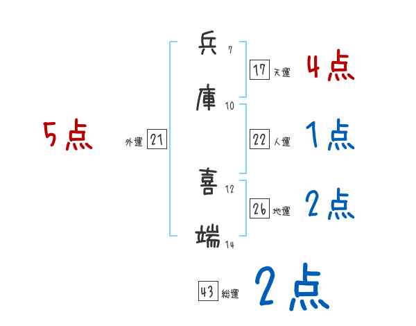 兵庫喜端さんの画数の鑑定結果