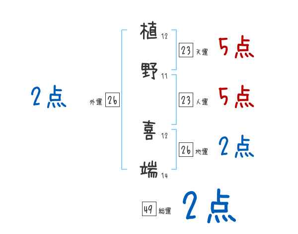 植野喜端さんの画数の鑑定結果
