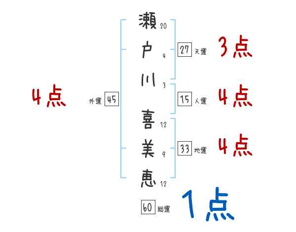 瀬戸川喜美恵さんの外運は45画の4つ星