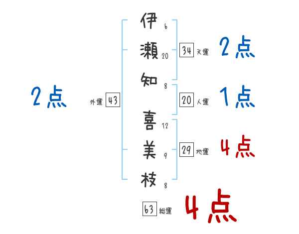 伊瀬知喜美枝さんの画数の鑑定結果