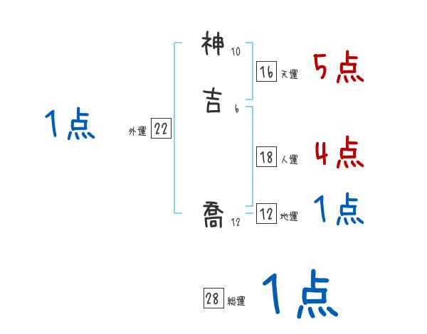 神吉喬さんの画数の鑑定結果
