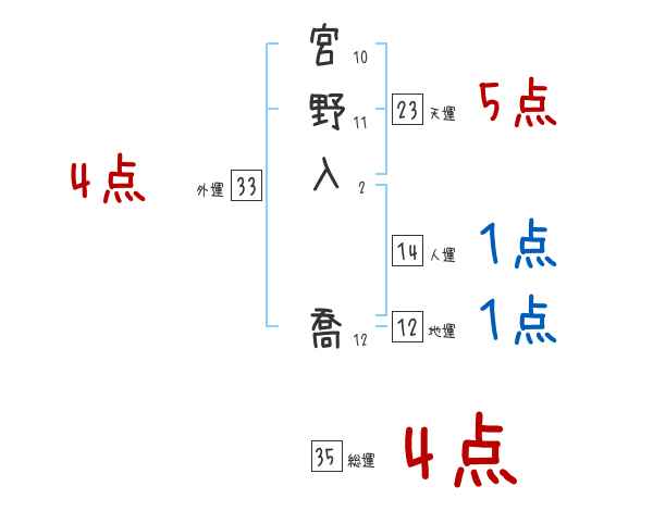 宮野入喬さんの画数の鑑定結果