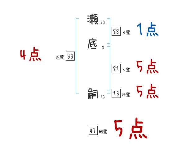 瀬底嗣さんの画数の鑑定結果