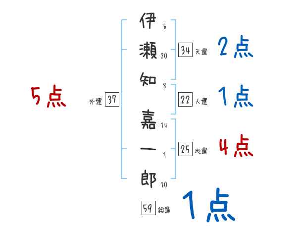 伊瀬知嘉一郎さんの画数の鑑定結果