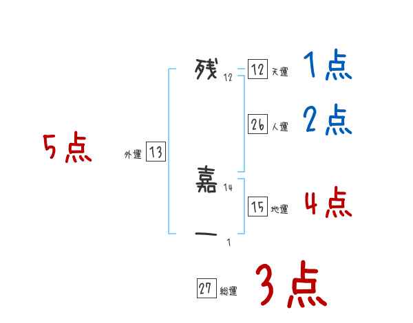 残嘉一さんの画数の鑑定結果