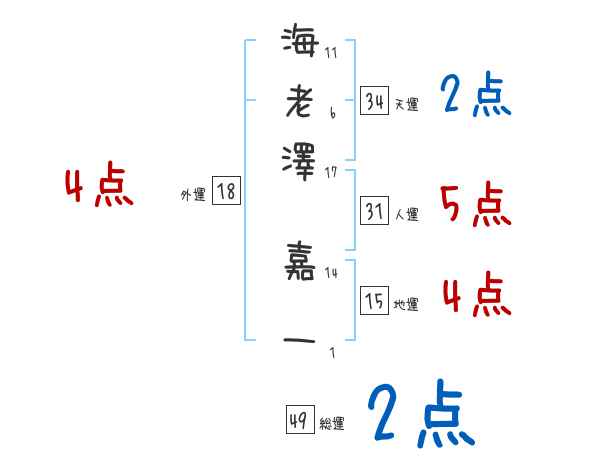 海老澤嘉一さんの画数の鑑定結果