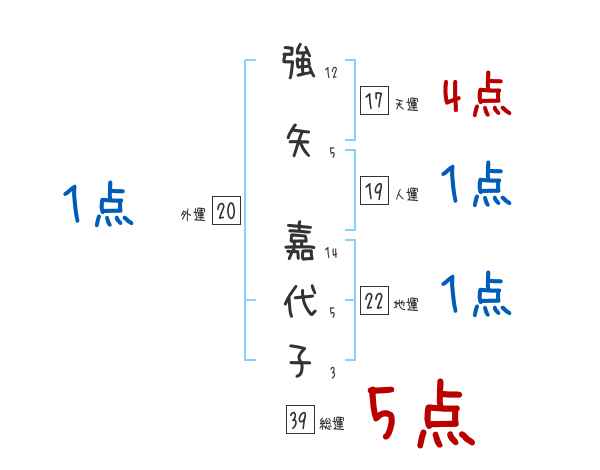 天運![]() | 強矢嘉代子さんの天運は17画の4つ星!積極的な行動力。地位を気づき財産を手に入れる。純粋な心と直感力。 家系が持つ宿命的な運勢を表します。祖先から受け継いだ苗字ですので自分の力が及びません。家柄を象徴します。 |