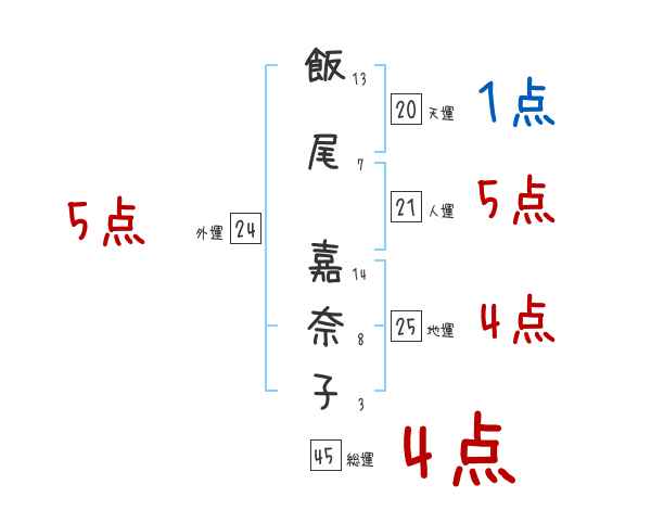 飯尾嘉奈子さんの画数の鑑定結果