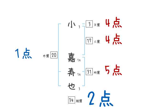 小嘉寿也さんの画数の鑑定結果