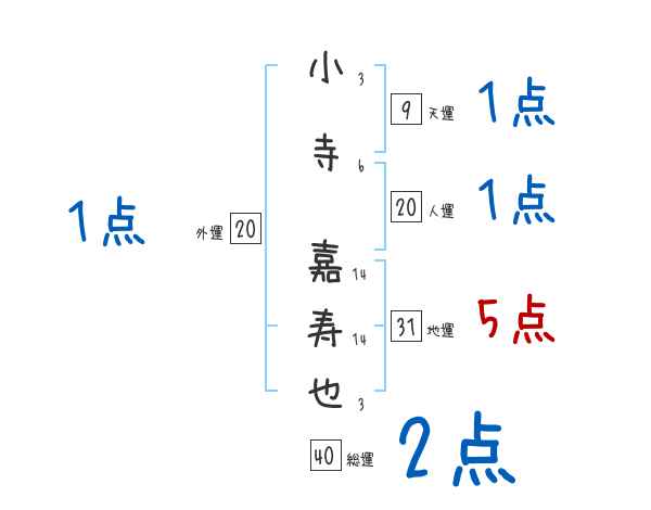 小寺嘉寿也さんの画数の鑑定結果