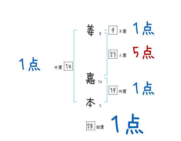 姜嘉本さんの画数の鑑定結果