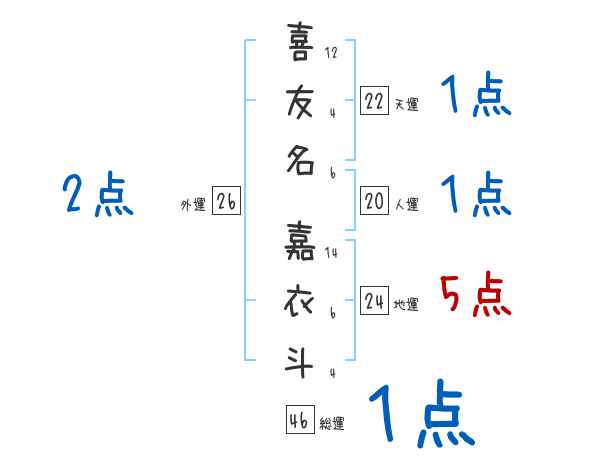 喜友名嘉衣斗さんの画数の鑑定結果