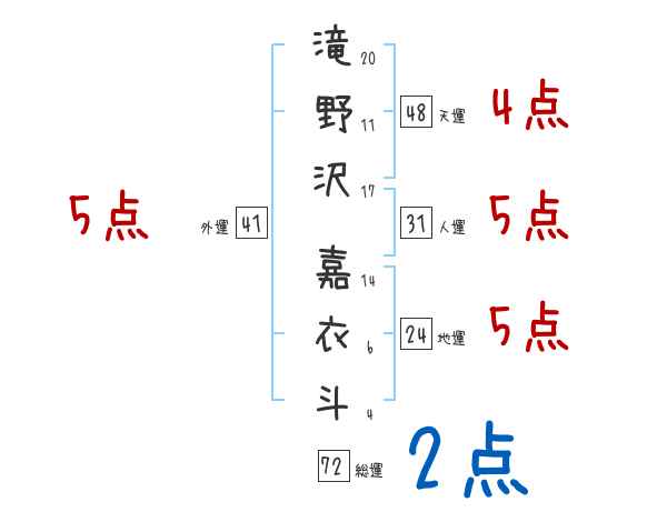 滝野沢嘉衣斗さんの画数の鑑定結果