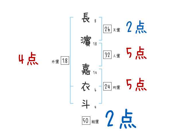 家系が持つ宿命的な運勢を表します。祖先から受け継いだ苗字ですので自分の力が及びません。家柄を象徴します。
