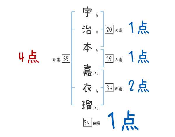 宇治本嘉衣瑠さんの画数の鑑定結果