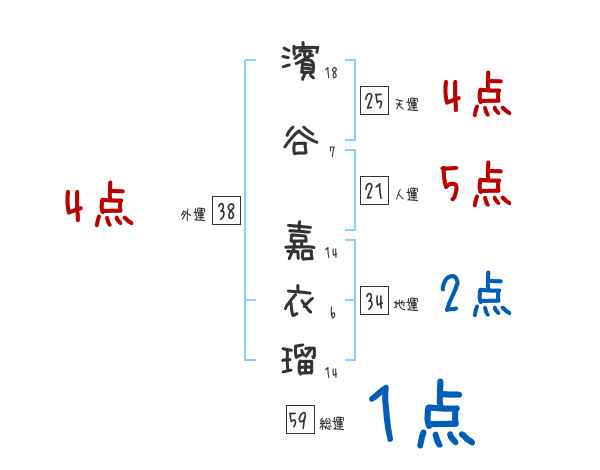 濱谷嘉衣瑠さんの総運は59画の1つ星