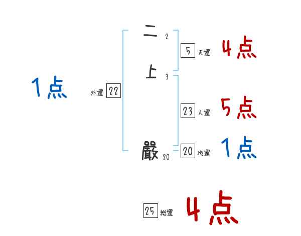 二上嚴さんの画数の鑑定結果