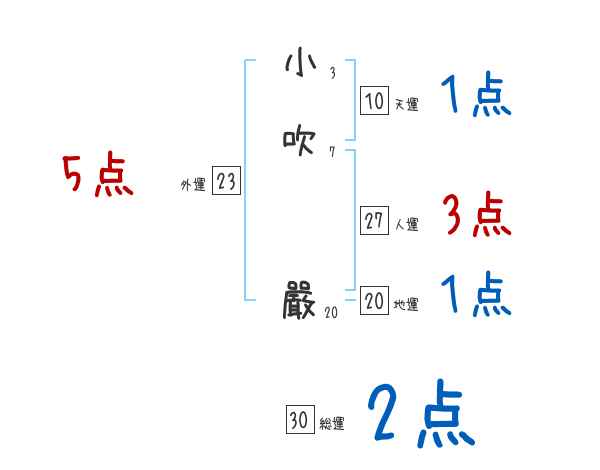 小吹嚴さんの画数の鑑定結果