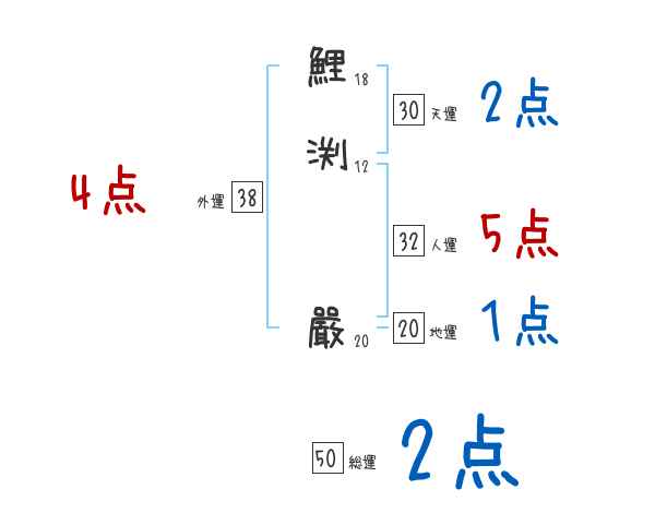 鯉渕嚴さんの画数の鑑定結果