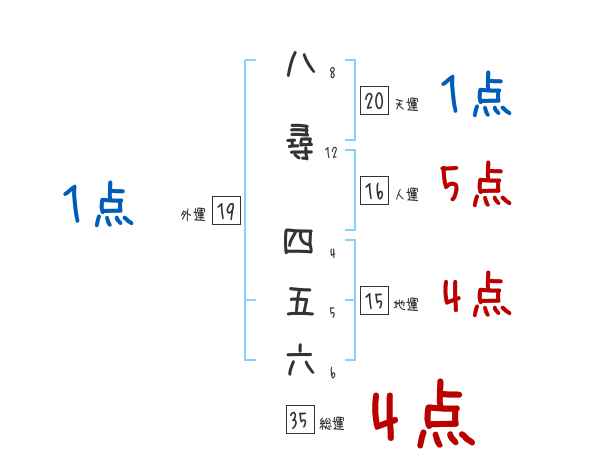八尋四五六さんの画数の鑑定結果