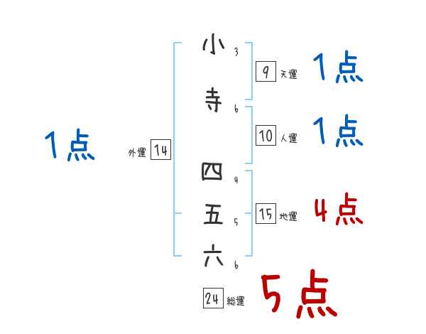 地運![]() | 小寺四五六さんの地運は15画の4つ星!人徳があり出世する。順調に物事を進め円満な人生。 個性を表す基礎的な運勢です。性格形成や対人関係、行動力など家庭環境に影響されます。主に誕生してから20歳くらいまでの若年期の運勢を表します。 |