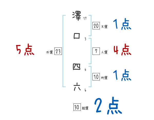 外運![]() | 澤口四六さんの外運は23画の5つ星!想像力に優れ活力がある。一代で成功し名誉を手に入れる。 生活面を象徴する運勢です。外部から受ける影響力を表し、結婚運、家庭運や職場、環境への順応性を表します。 |