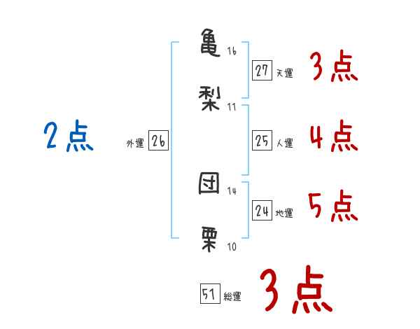 亀梨団栗さんの画数の鑑定結果