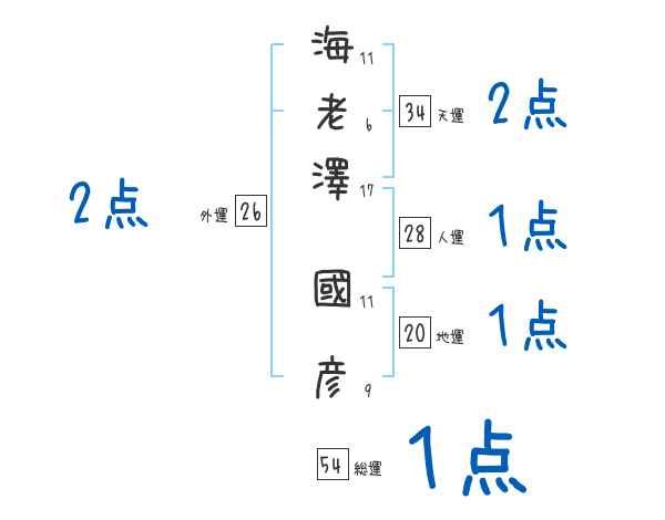 総運![]() | 海老澤國彦さんの総運は54画の1つ星!トラブルが多いかも。周りをよく見て協調して過ごしましょう。 あなたの人生を表す1番重要な運勢です。生涯を通じて影響する総合運となり、主に50歳以降の晩年期に影響を及ぼします。 |