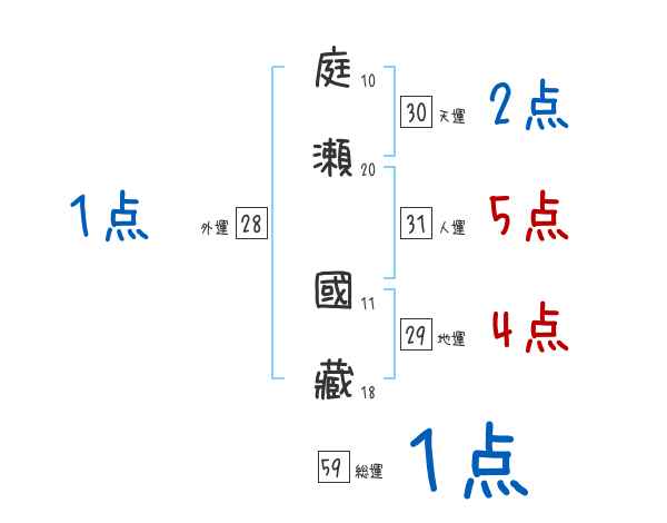 庭瀬國藏さんの画数の鑑定結果