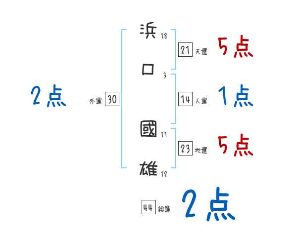 浜口國雄さんの画数の鑑定結果