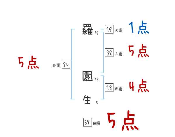 羅園生さんの画数の鑑定結果