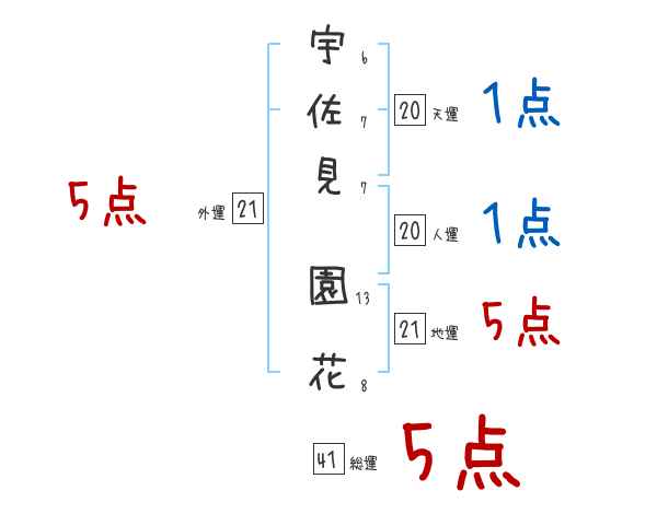 外運![]() | 宇佐見園花さんの外運は21画の5つ星!統率力がある。独立し成功する。名誉を手に入れる。 生活面を象徴する運勢です。外部から受ける影響力を表し、結婚運、家庭運や職場、環境への順応性を表します。 |