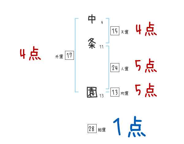 中条園さんの画数の鑑定結果