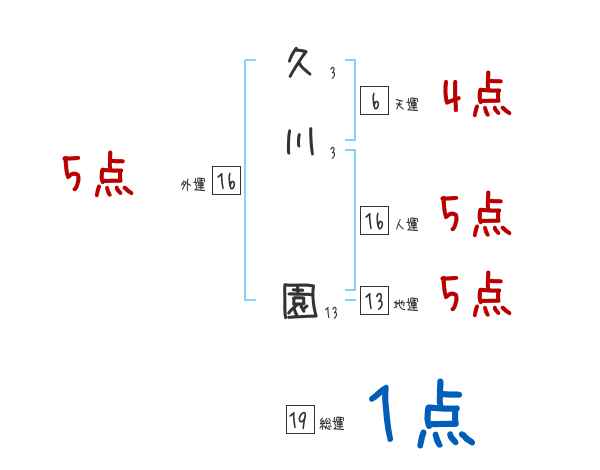 天運![]() | 久川園さんの天運は6画の4つ星!慎重な努力家で信頼を得る。誠実な精神で向上心に優れる。 家系が持つ宿命的な運勢を表します。祖先から受け継いだ苗字ですので自分の力が及びません。家柄を象徴します。 |