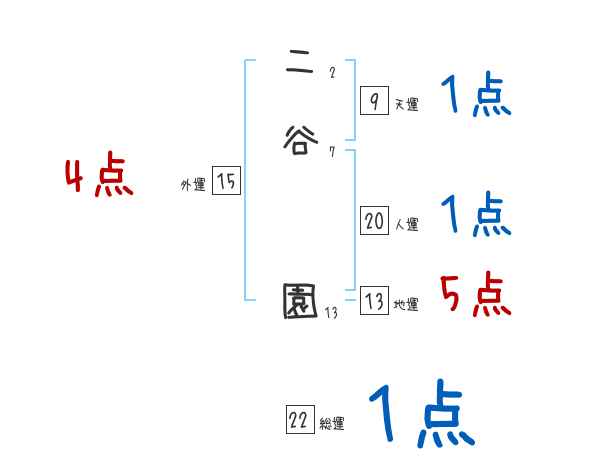 二谷園さんの画数の鑑定結果