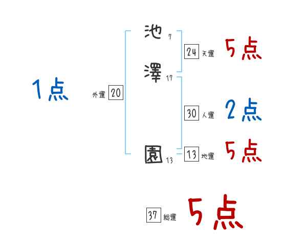 天運![]() | 池澤園さんの天運は24画の5つ星!家庭運が良く順調な人生。金運にも恵まれる。 家系が持つ宿命的な運勢を表します。祖先から受け継いだ苗字ですので自分の力が及びません。家柄を象徴します。 |