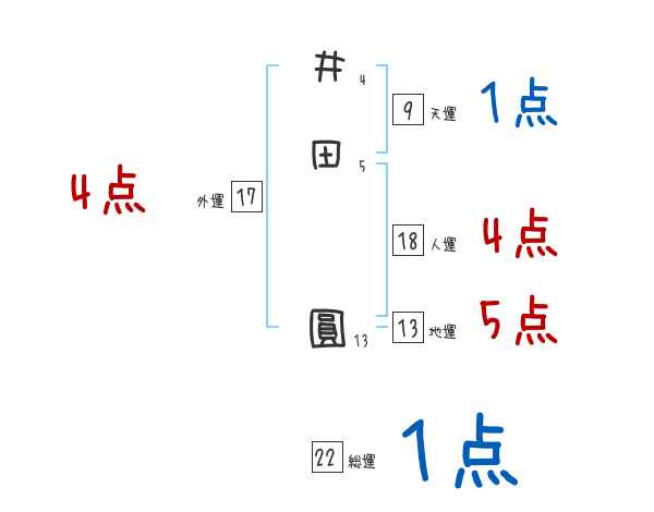 外運![]() | 井田圓さんの外運は17画の4つ星!積極的な行動力。地位を気づき財産を手に入れる。純粋な心と直感力。 生活面を象徴する運勢です。外部から受ける影響力を表し、結婚運、家庭運や職場、環境への順応性を表します。 |