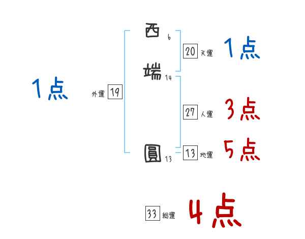 西端圓さんの画数の鑑定結果