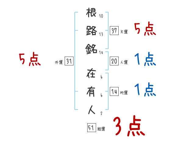 家系が持つ宿命的な運勢を表します。祖先から受け継いだ苗字ですので自分の力が及びません。家柄を象徴します。