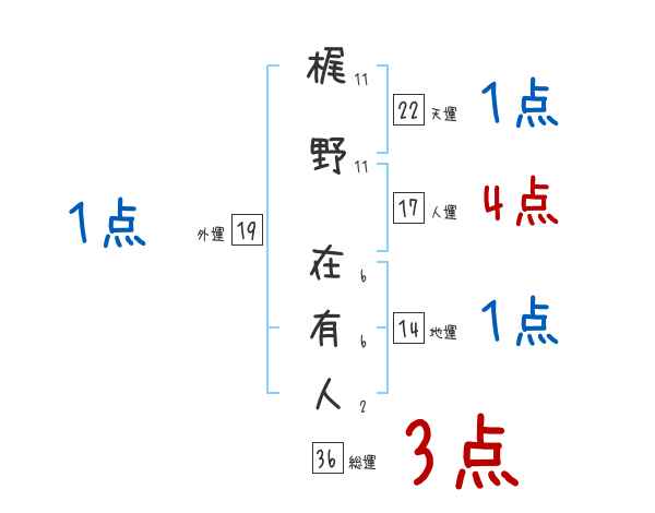 梶野在有人さんの画数の鑑定結果