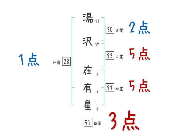 湯沢在有星さんの総運は51画の3つ星
