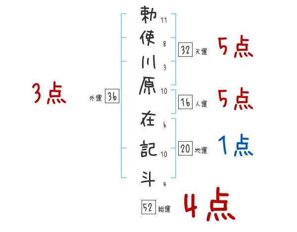 勅使川原在記斗さんの画数の鑑定結果