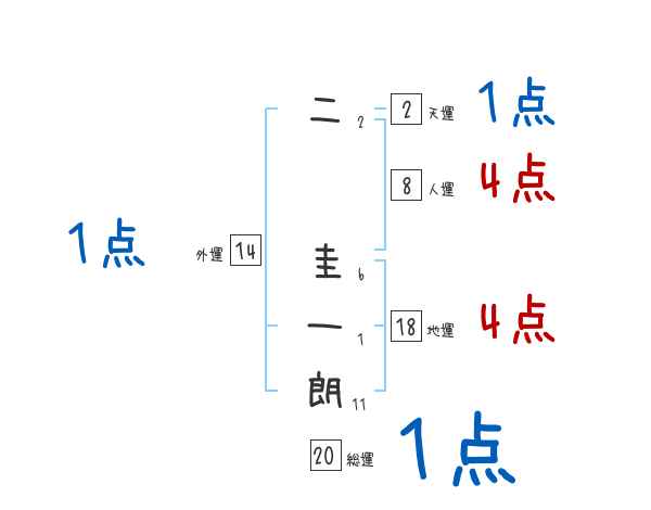 二圭一朗さんの画数の鑑定結果